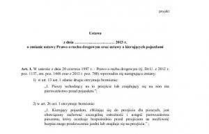 18 września do opinii Biura Legislacyjnego Kancelarii Sejmu wpłynął poselski projekt ustawy o zmianie ustawy - Prawo o ruchu drogowym oraz ustawy o kierujących pojazdami.Grupa posłów KP Platforma Obywatelska złożyła projekt dotyczący wprowadzenia przepisu nadającego pierwszeństwo pieszego przed pojazdem nie tylko gdy pieszy jest już na przejściu, ale również gdy ma zamiar wejść na przejście i sygnalizuje to oczekiwaniem bezpośrednio przed przejściem, a także wprowadzenia do egzaminu państwowego na prawo jazdy dodatkowej części - modułu sprawdzającego praktyczne umiejętności udzielania pierwszej pomocy.