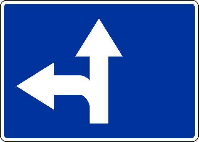 Sposób jazdy w związku z zakazem skrętu w lewo na najbliższym skrzyżowaniu.